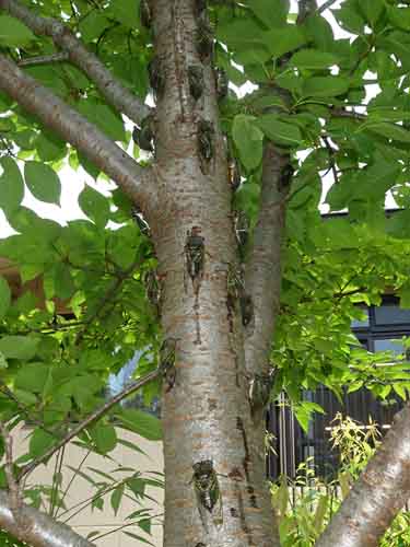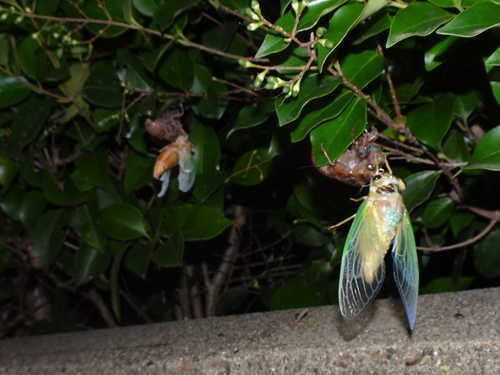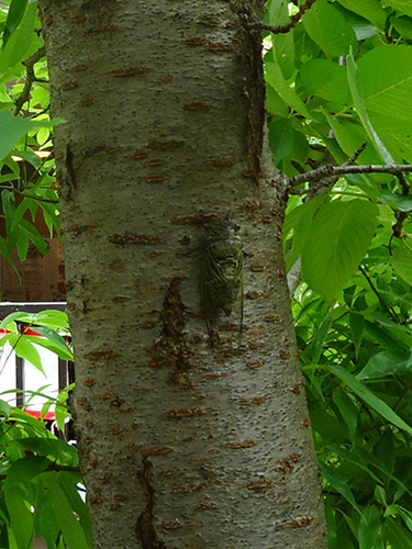 セミも鳴き声だけでなく、姿を見せるようになってきました。
