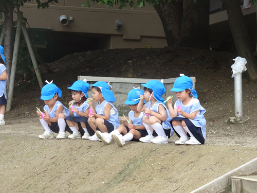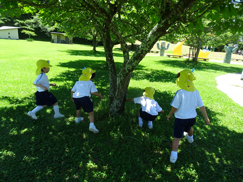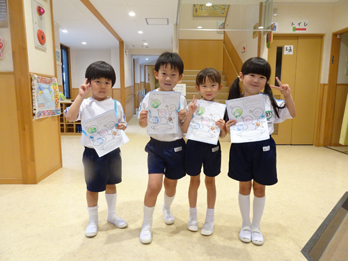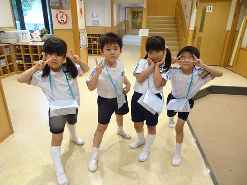 夏期保育やりす組さんで会える子もいますが、二学期にはみんな元気にまた幼稚園に来てくださいね。
