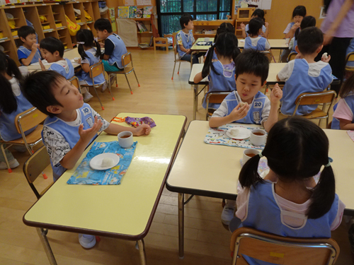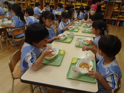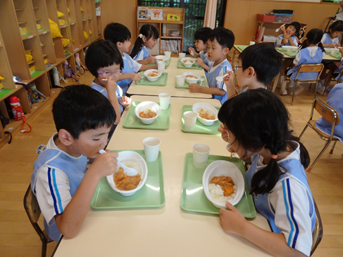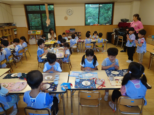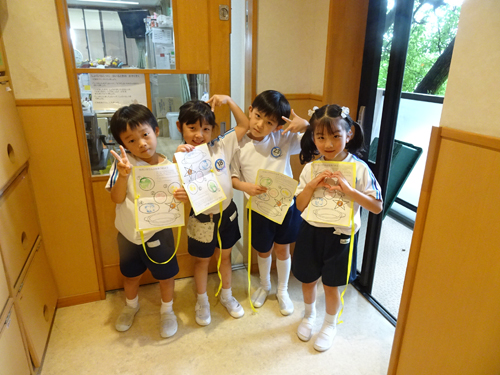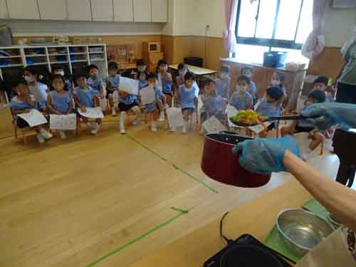 園長先生の話にもあったように、夏野菜等、食べ物もしっかり食べて、元気に夏を過ごしましょう。