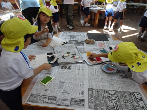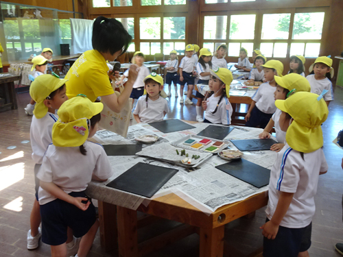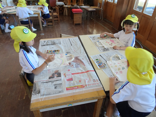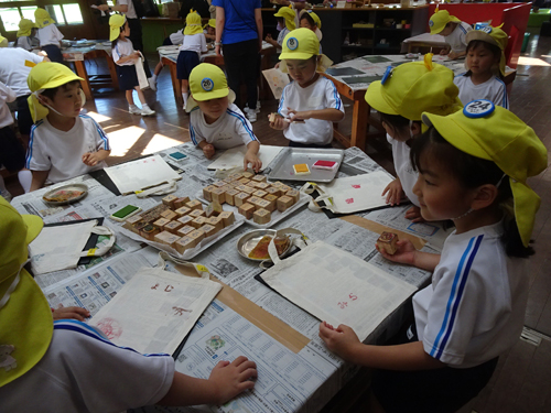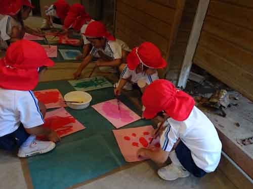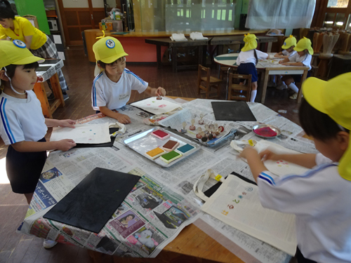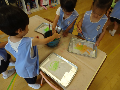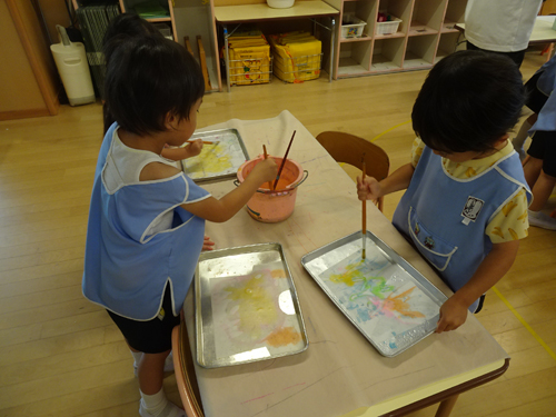 保育室ではにじみ絵遊びを楽しむクラスもありました。
