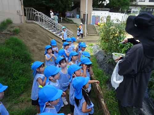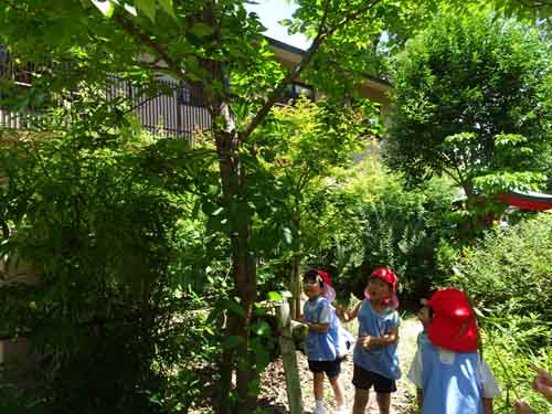 年中さんは植えた夏野菜が育っているので、観察してお世話をするクラスがありました。