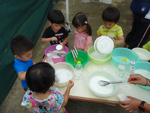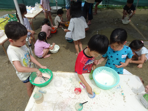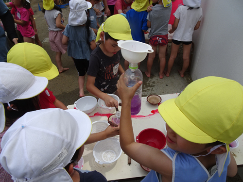 色水遊びと子ども達の楽しそうな声がいっぱいでした。