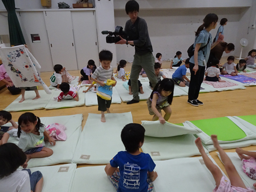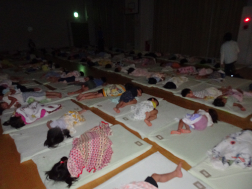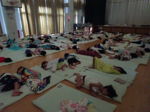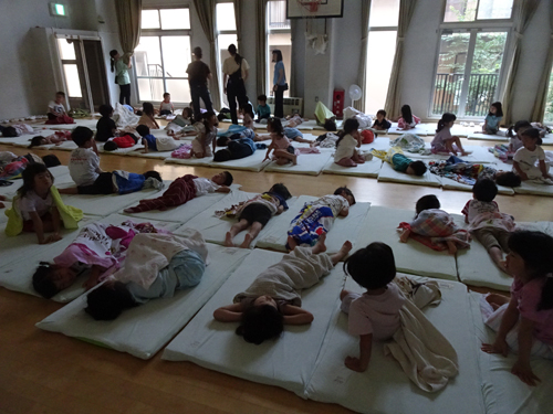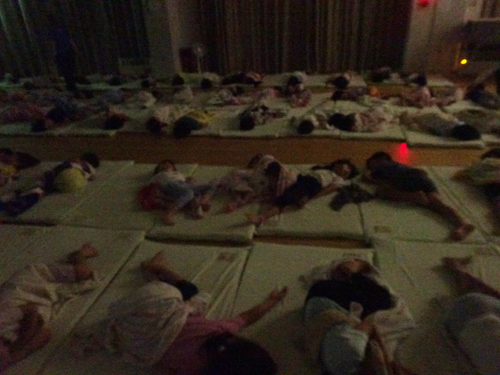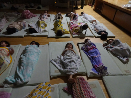 子ども達はカーテン越しの明かりに目を覚ます子も出てきましたが、ほとんどの子がまだぐっすり寝ています。