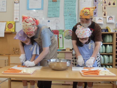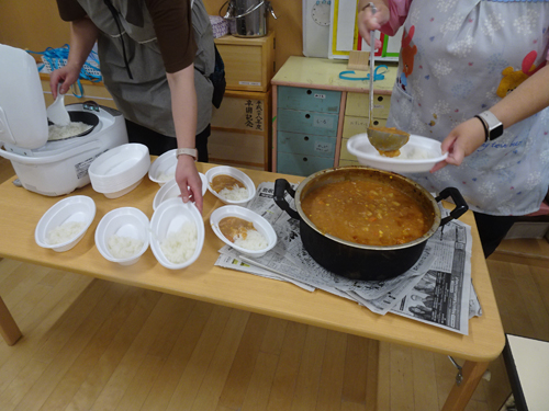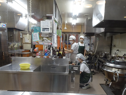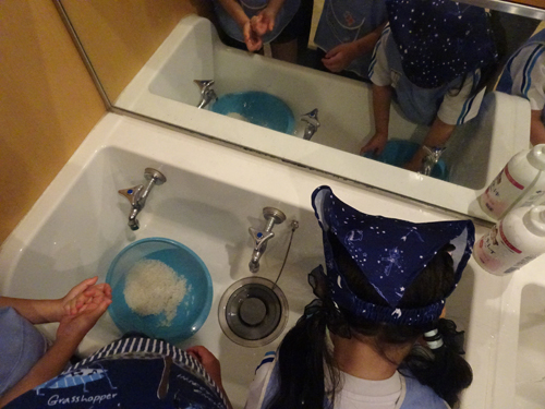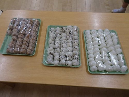 調理室では朝ごはんのおにぎり作りが始まっています。