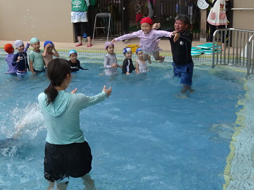 泳ぐことを少し意識したり、運動講師の先生の力を借りてのプールジャンプを楽しんでいました。
