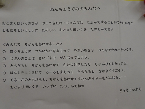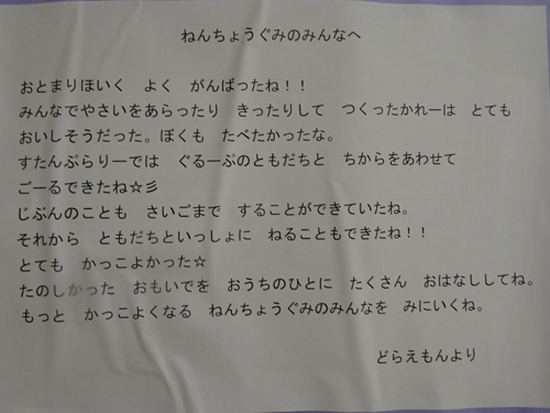 宿泊保育を終えて、また少しお兄さんお姉さんになったかな。