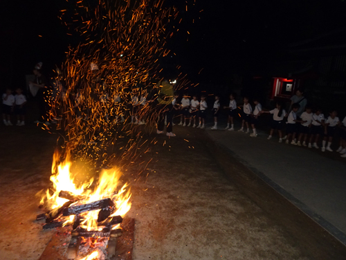 昔は笹飾りを川に流していましたが、今は燃やして天に願い事が届くように笹送りをしています。