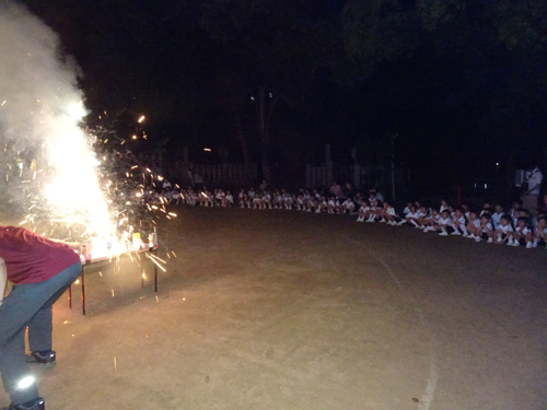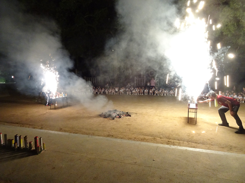 まずは体育館で花火をする時の注意点を教えてくださり、