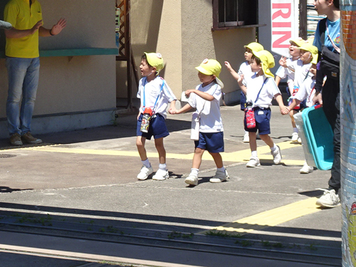 年長さんは今週末の宿泊保育の夕食の材料の買い物に市場に行って来ました。