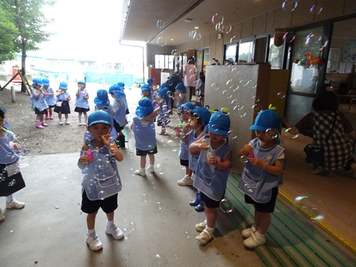 水遊び以外でもシャボン玉遊びをするクラスもありました。