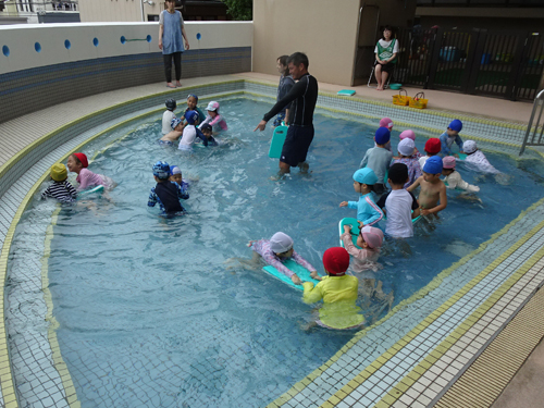 少しだけ本降りで中断したクラスもありましたが、予定の全クラスがプールに入水しました。