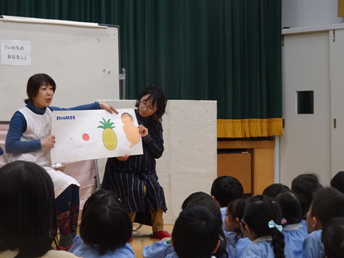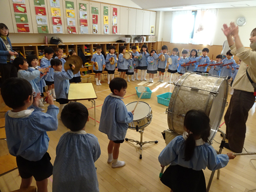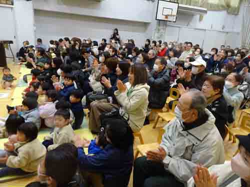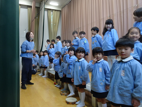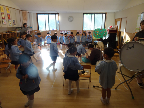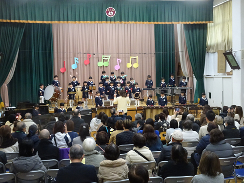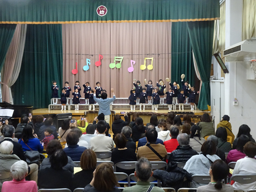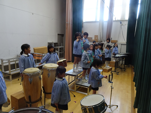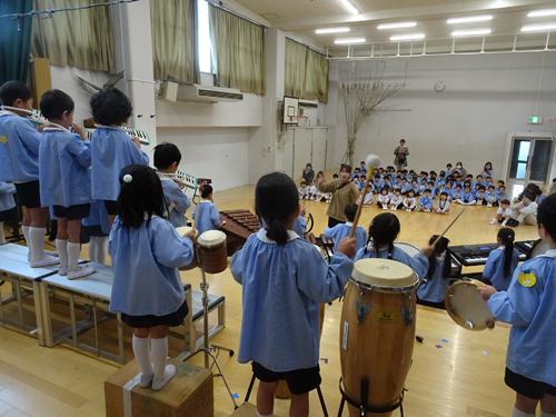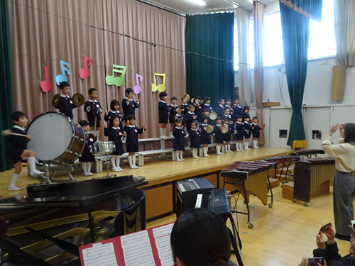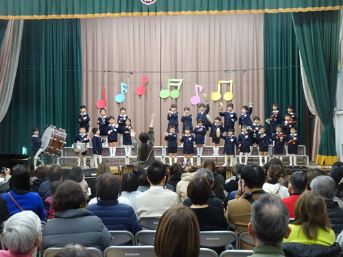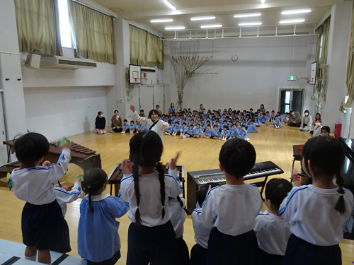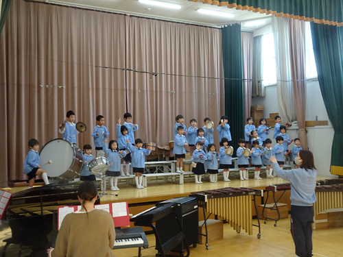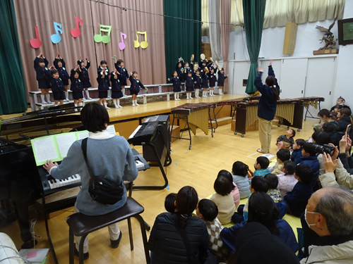今日は音楽会本番に来られなかった方や乳児園や来年度入園予定の子ども達を前にふれあい音楽会が開催されました。