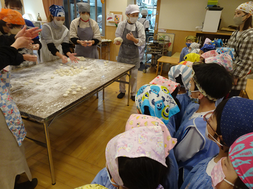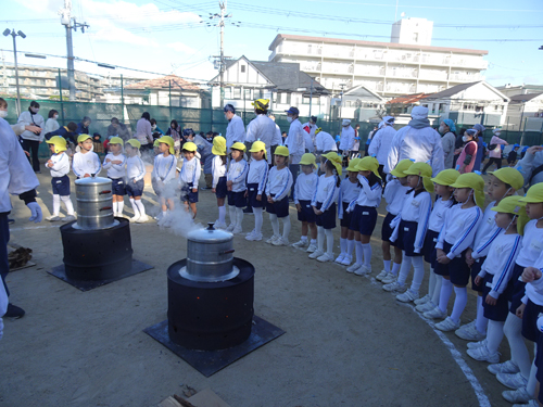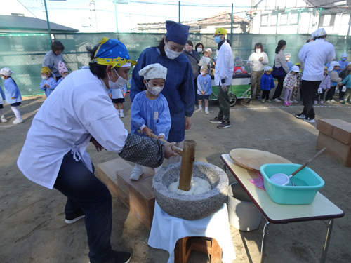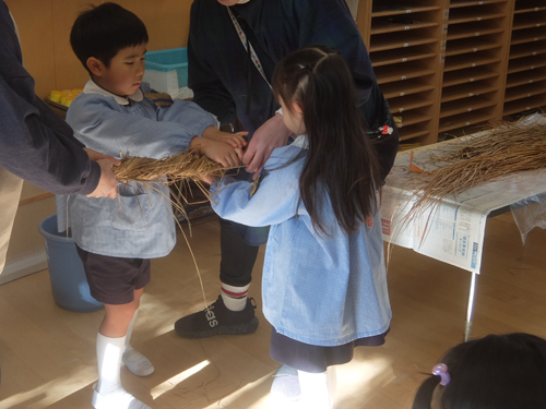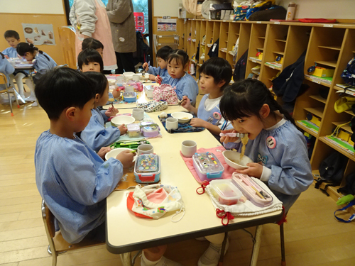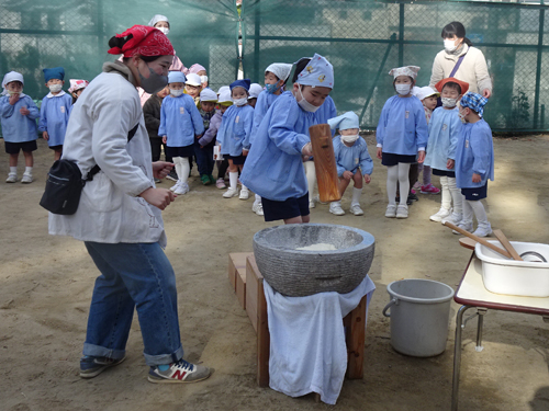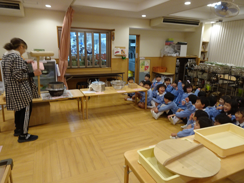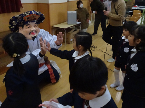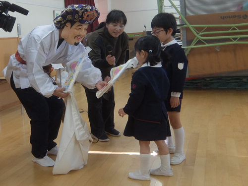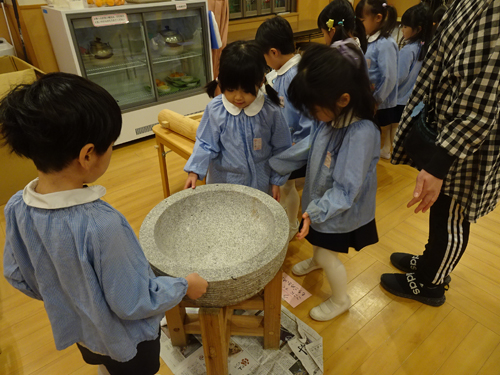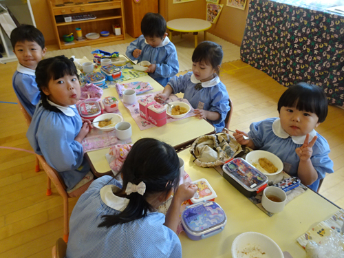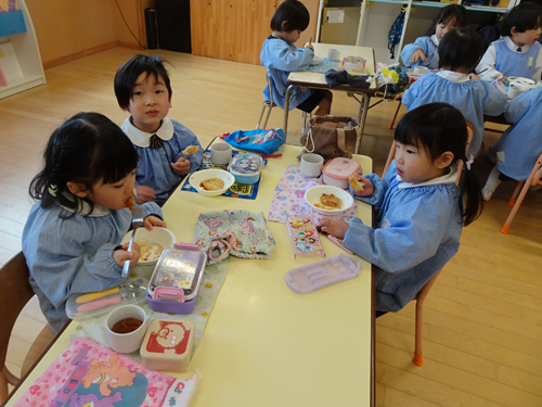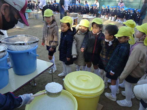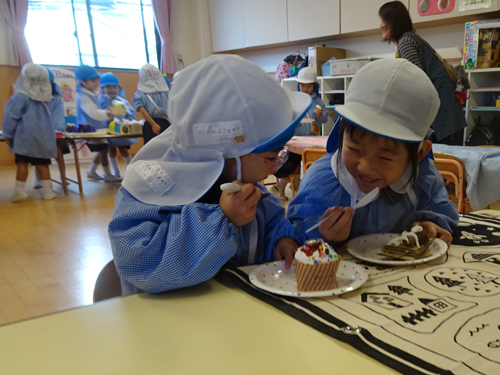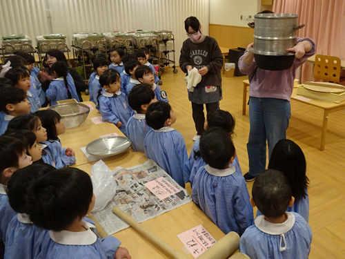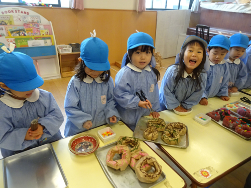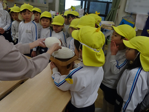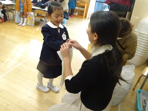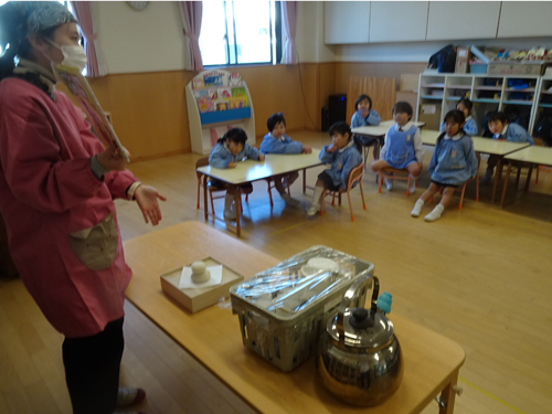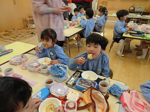 全学年が招待されていますが、今日は年少さんにおいもやさんから招待がありました。