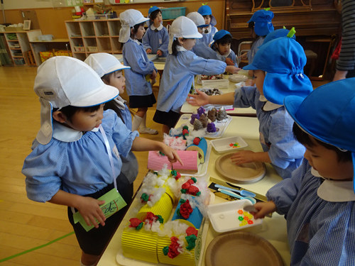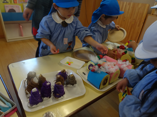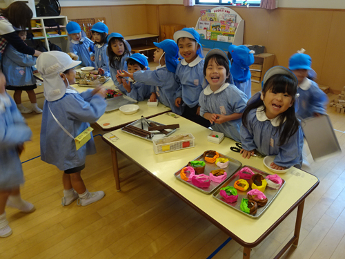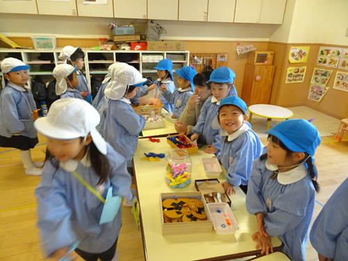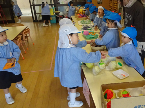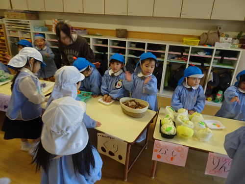 今日は年少さんが学年全体でお店屋さんごっこをしました。