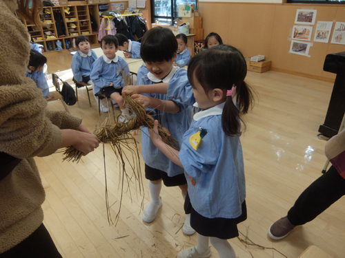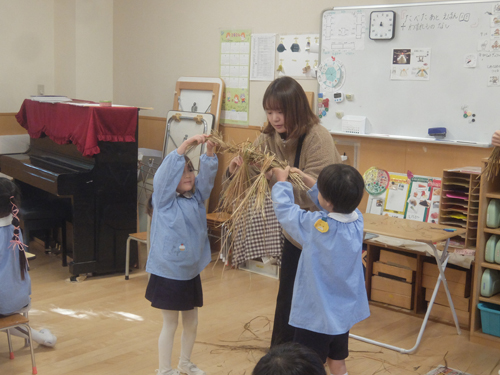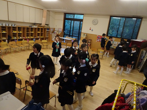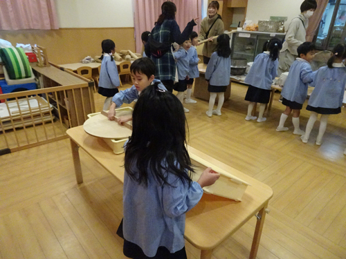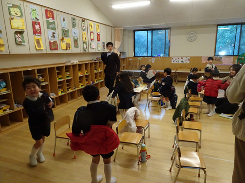 年中さん年少さんは大掃除も終わっているので、園庭や保育室でのんびり遊んで過ごしました。