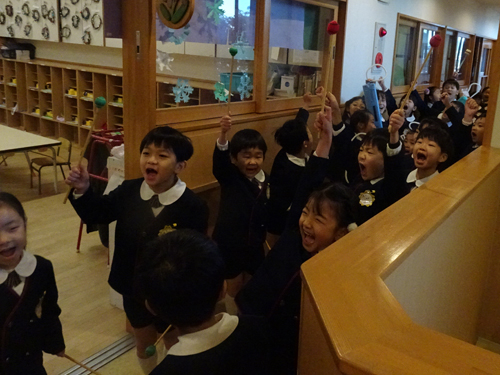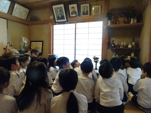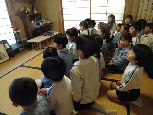 29年前の今日は、園歌を作詞した前々園長先生の帰幽の日なので、年長さんがお参りに来てくれました。