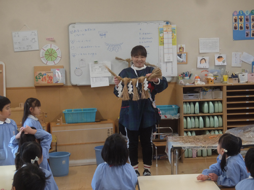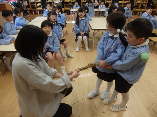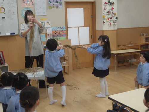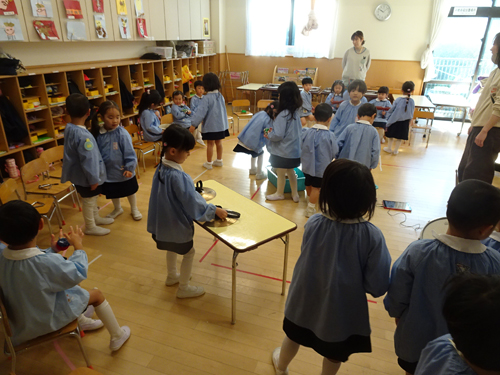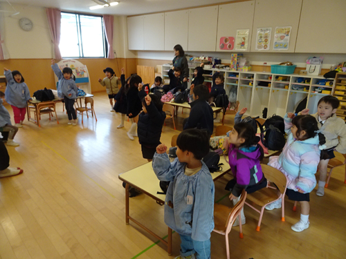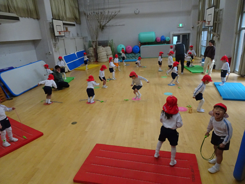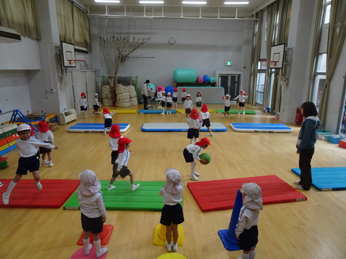 年中さんは運動講師の先生の体育遊びに参加しました。