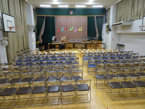 音楽会前日の今日は、各クラス会場の体育館で合奏や歌を行いました。