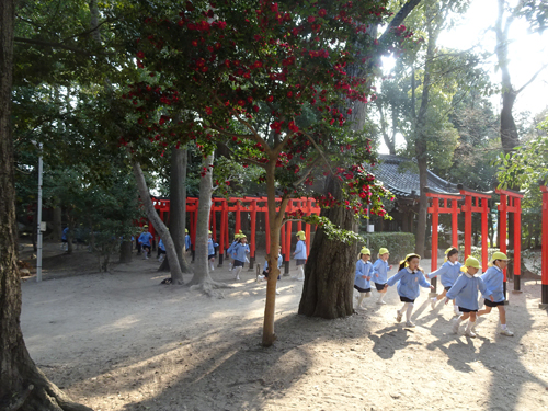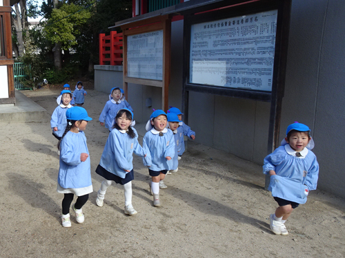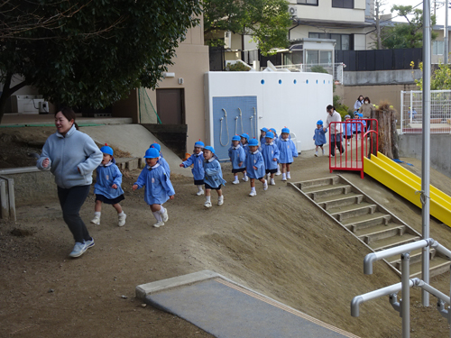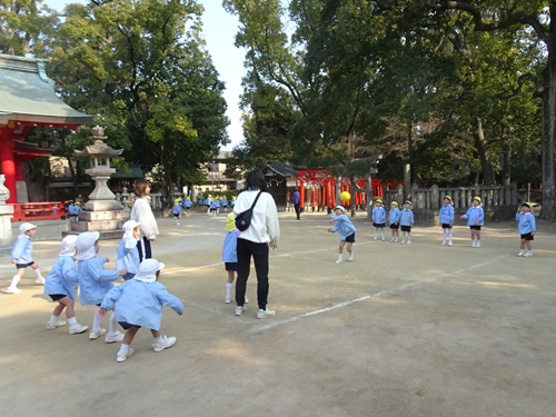 朝起きて、登園するのも一頑張りが必要ですが、各クラス、時間を見つけては園庭や境内を走っています。
