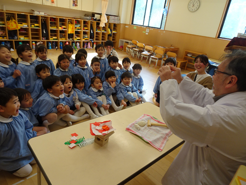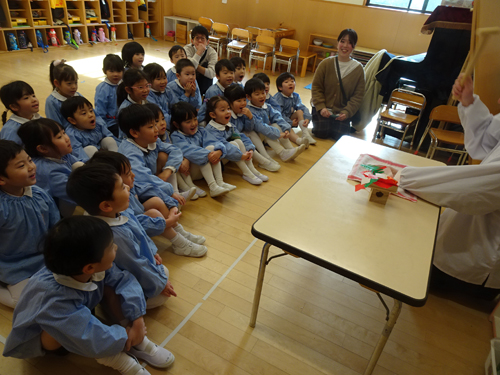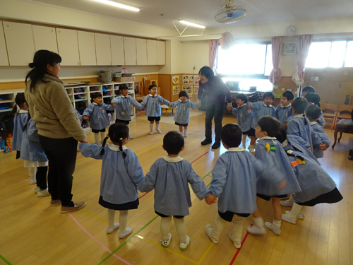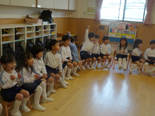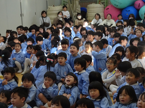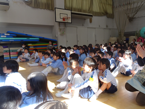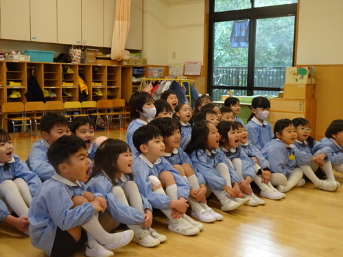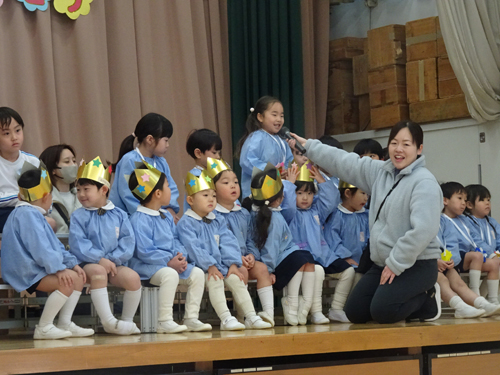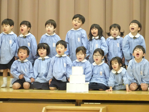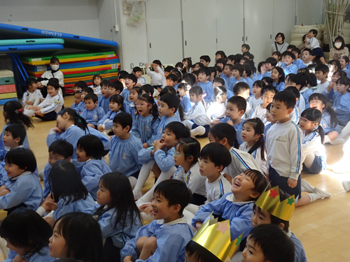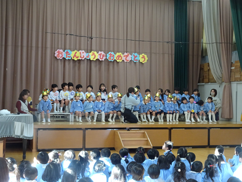 今日はみんな体育館に集まり、12月1月生まれの子達の誕生会が開催されました。