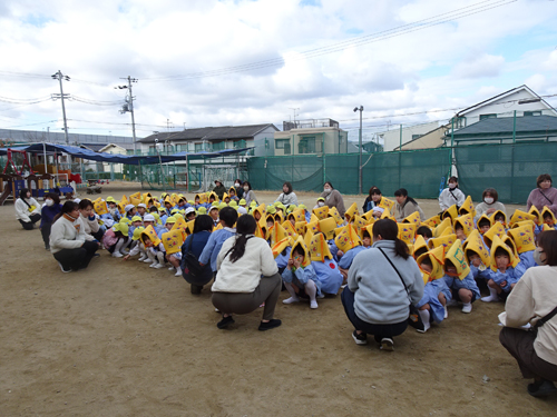 乳児園、あゆみ学園の子も含めて、今までで一番早く園庭に非難することができました。