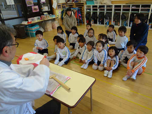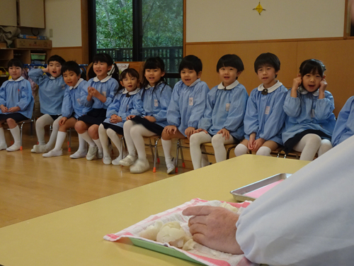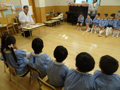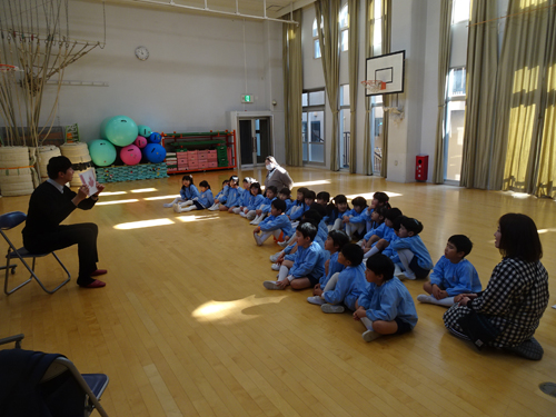 阪神大震災を経験している園長先生から当時のお話がありましたが、とても真剣に聴いてくれました。