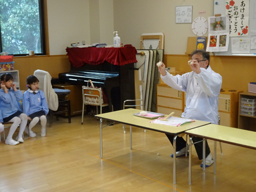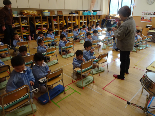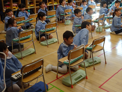 年中さんは音楽の先生に鍵盤ハーモニカを指導していただきました。