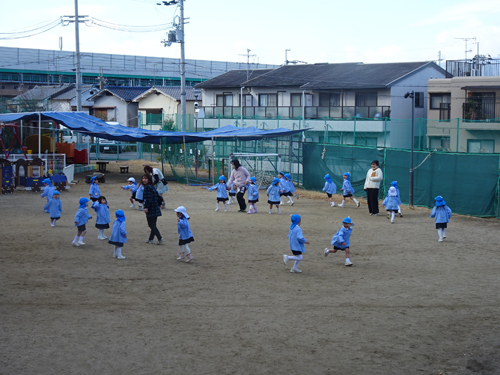 園庭でも寒そうな様子もなく元気に遊んでいます。