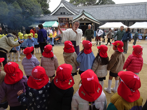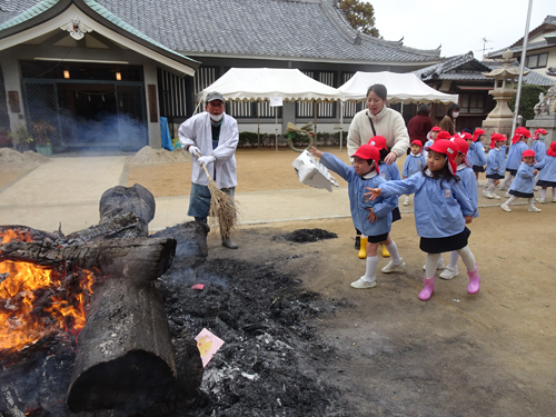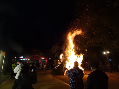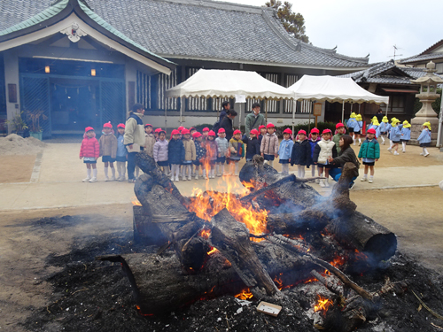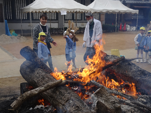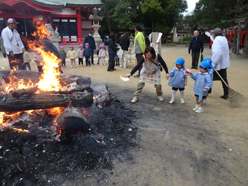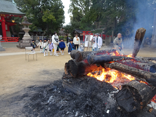 今日は小正月で、園のある亀之森住吉神社では大とんどが行われました。