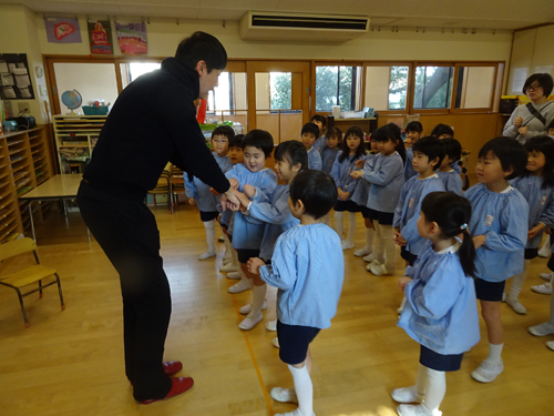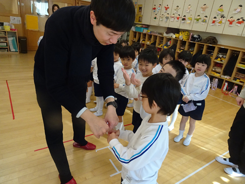 友達同士は握手でなくグータッチでお別れだよと一人一人とグータッチでお別れしてくださいました。