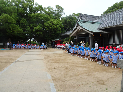 運動講師、先生代表、保護者代表と順番に玉串拝礼をしてこの夏のプール保育の安全をお願いしました。