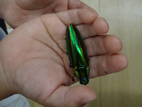 亀之森でも一夏に一度見られるかどうかのタマムシを見つけた子がいました。