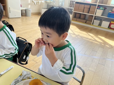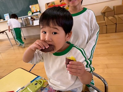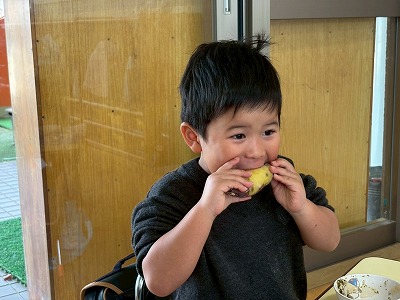 みんなで掘ったお芋を焼いもと揚げ芋にして食べました^^