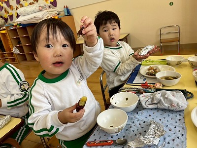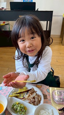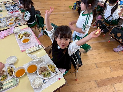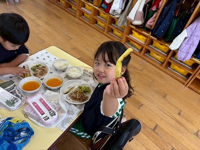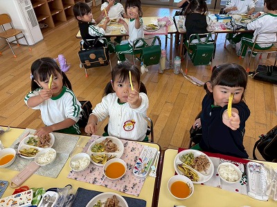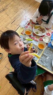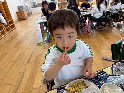 そして揚げ芋は先生たちでポテトのように細長く切って給食の先生に揚げてもらいました!