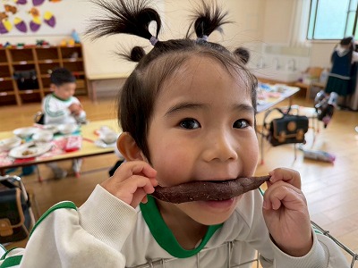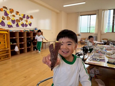 みんなで掘ってお手伝いしたお芋はとてもおいしかったね♡