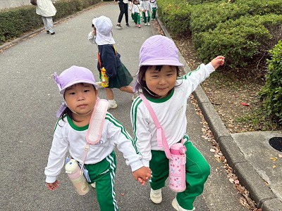 友達と手をつなぎ、楽しそうにおしゃべりをしながら元気よく公園へ向かいます。