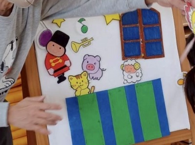 先生からのプレゼントは「おもちゃのチャチャチャ」のパネルシアターです。