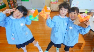 そして最後は年長児さんからこの日の為に作ったプレゼントをいただきました♪息を吹き込むとウサギが出てきます☆新入園児さんは大喜び!!これから幼稚園でたくさん遊んで楽しく過ごしましょうね☆