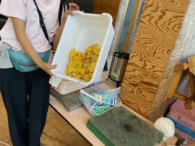 「玉ねぎ」と「にんじんの皮とガリバーの草木」の染め物です!