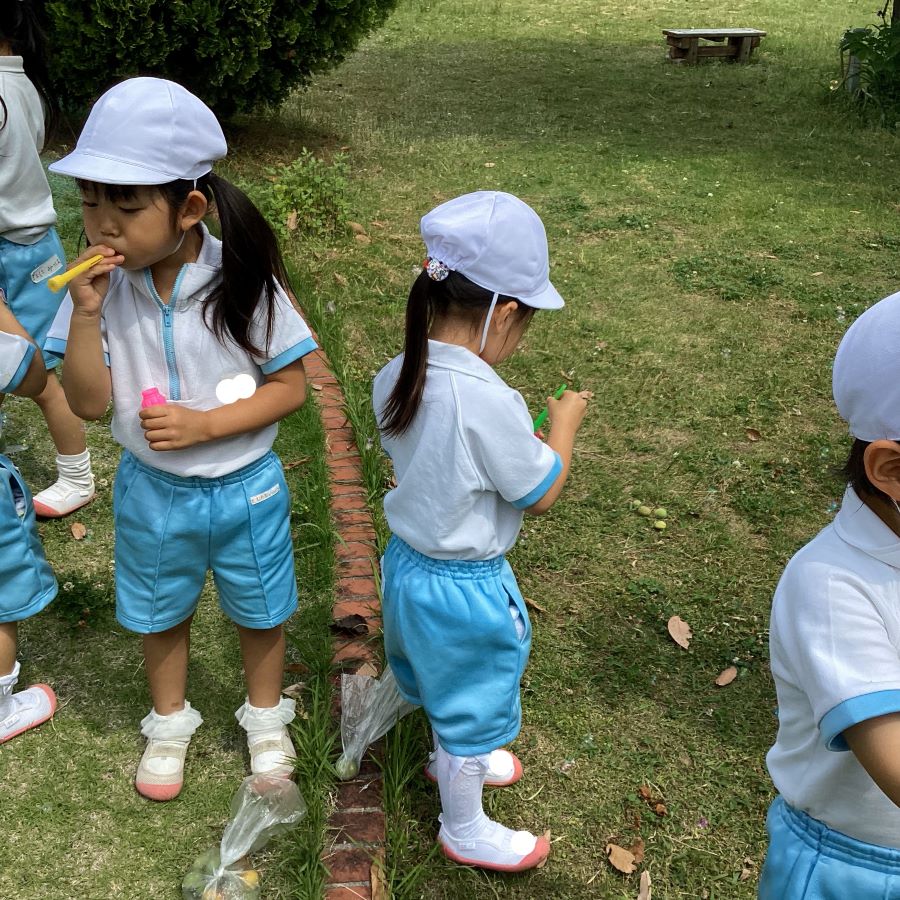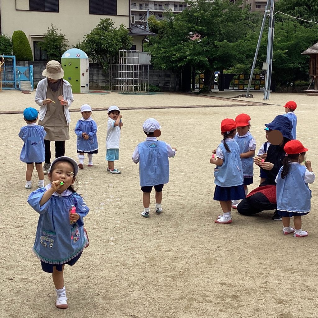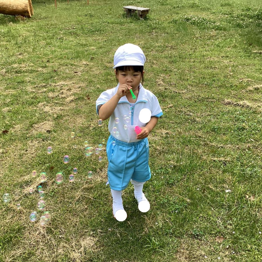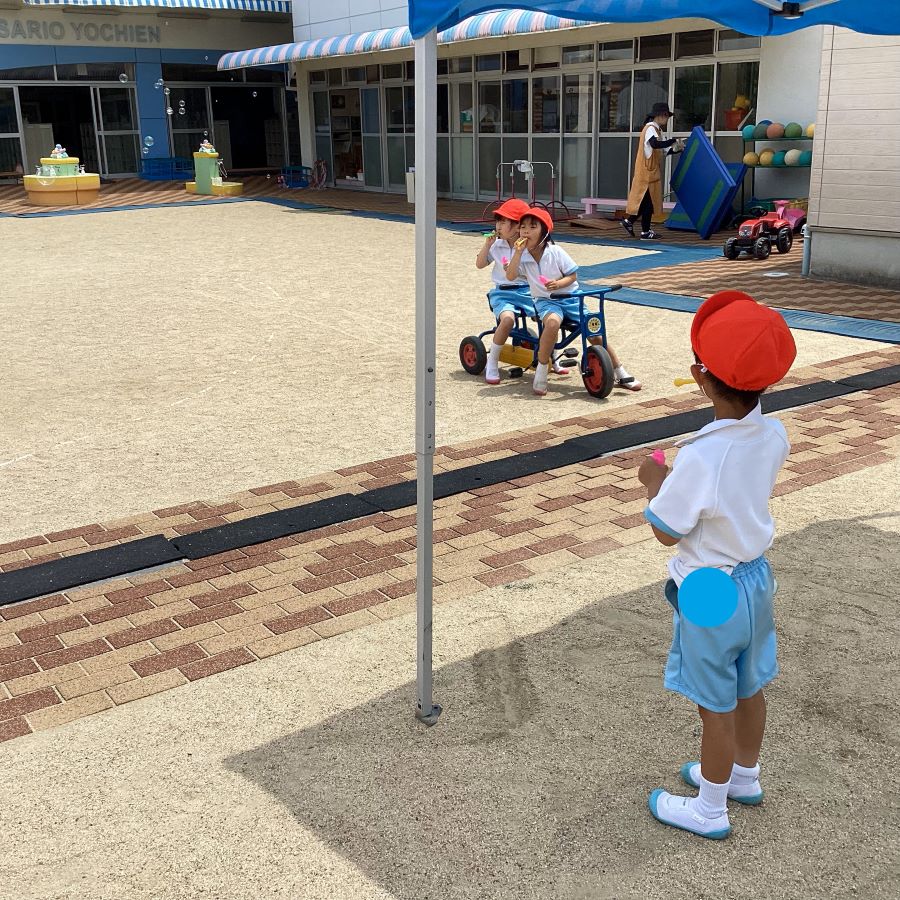 エジソン教室に来た子ども達をしゃぼん玉が迎え入れました🫧