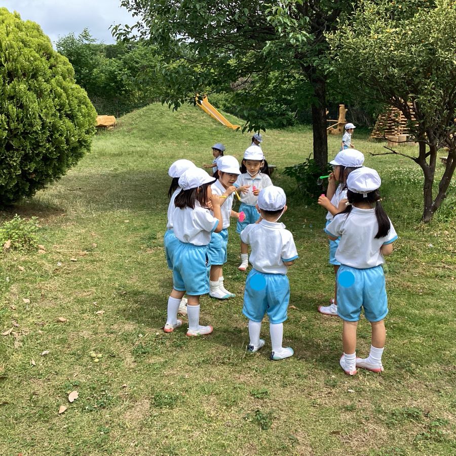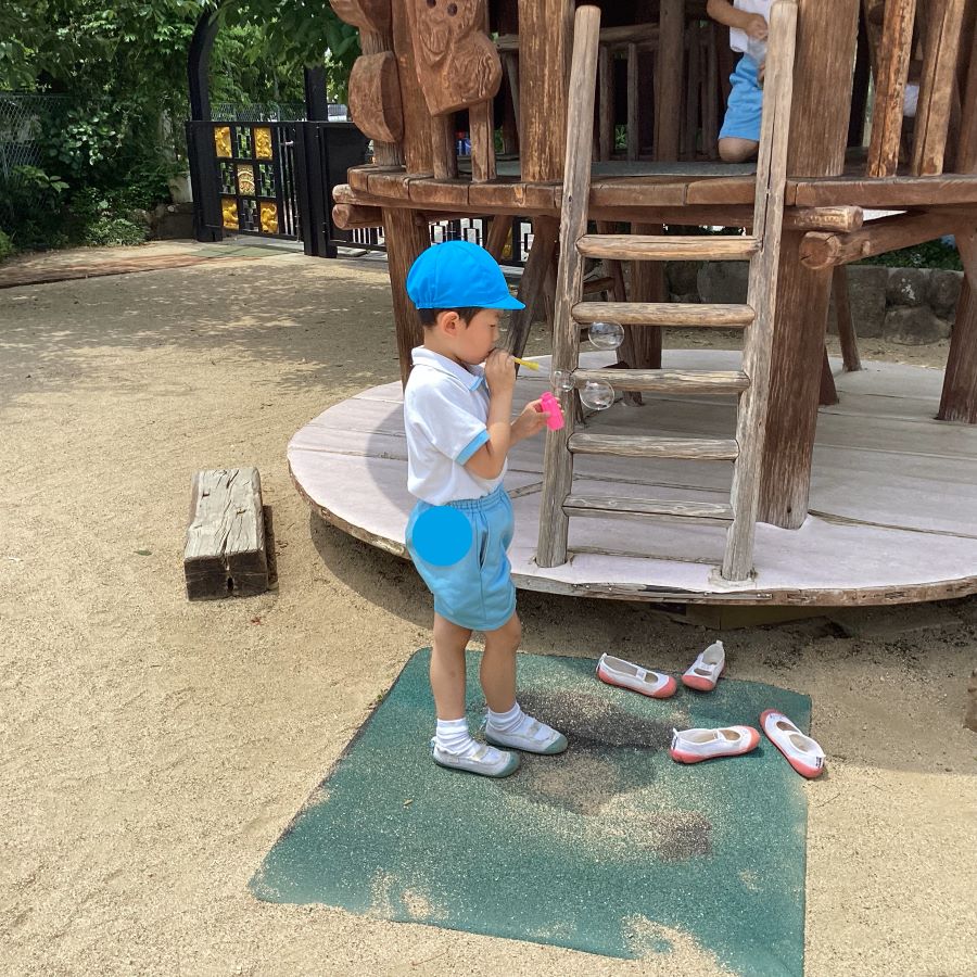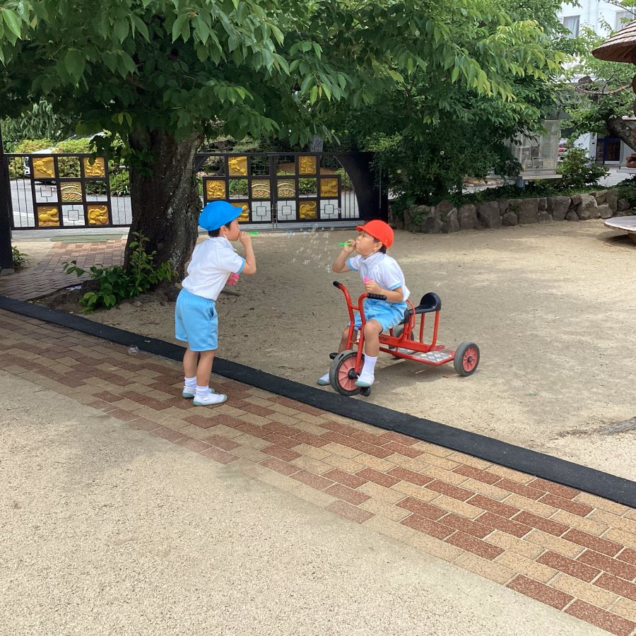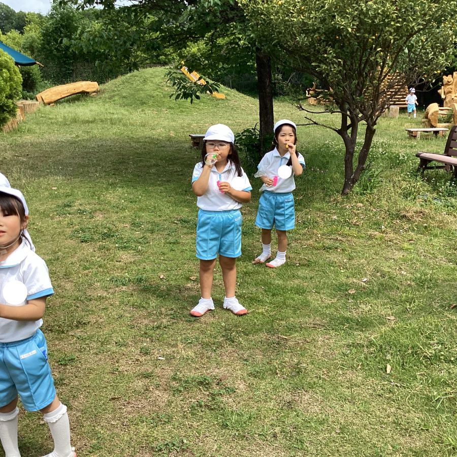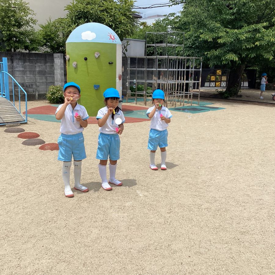 エジソン教室に来た子ども達をしゃぼん玉が迎え入れました🫧