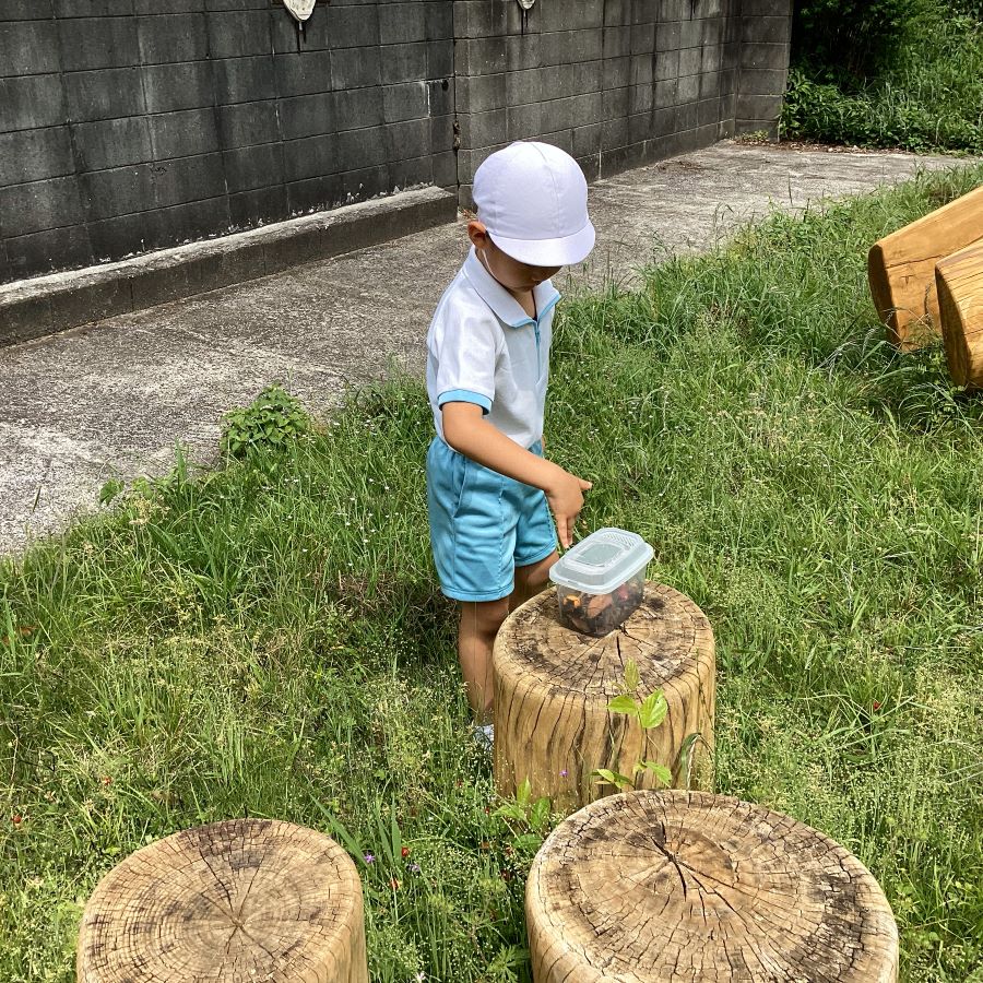 「いやん!虫がいるから触りたくない」と遠巻きに見る子や