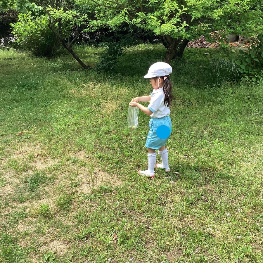 実り探しの日は朝は小雨で今日行けるか?!と年長児と空を眺めている状態。