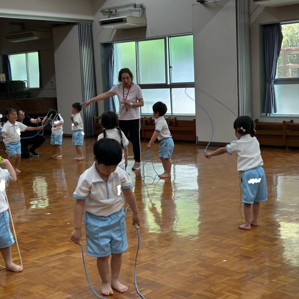 年長児は週に1度、体育指導があります。「今日は何するのー!?」と、毎回とても楽しみにしています。