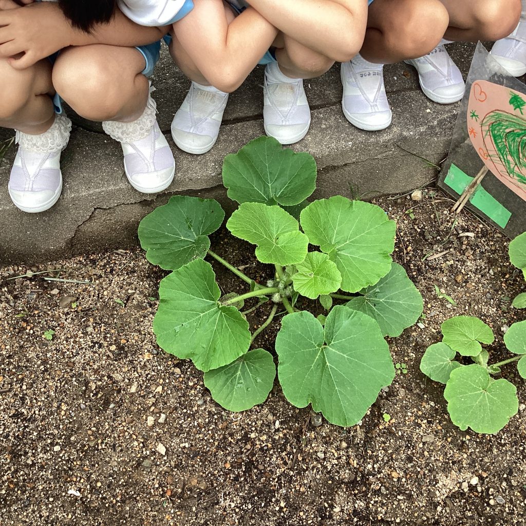 「うわっ!まだ暑いのに小さいけどカボチャできている!」