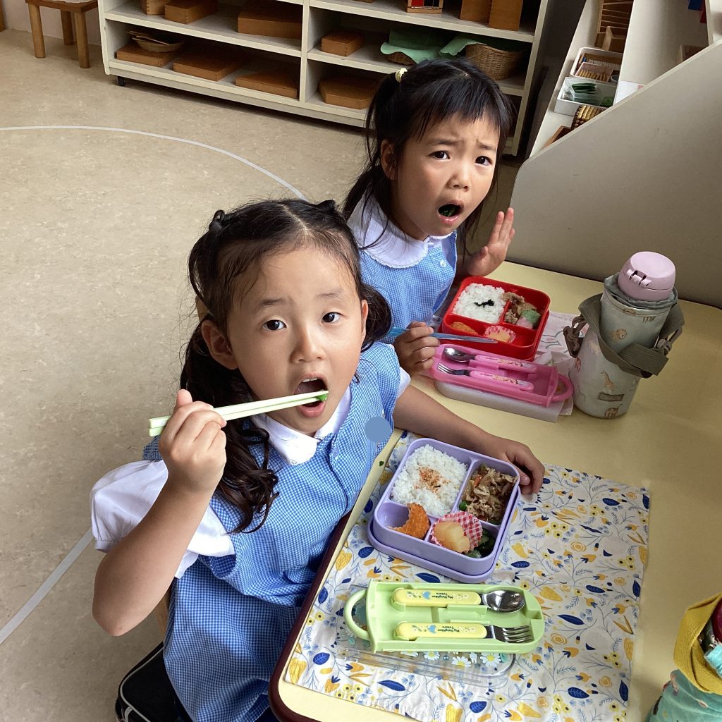 今日は年長さんだけの特別な1日保育にりんごジュースタイムもあります。