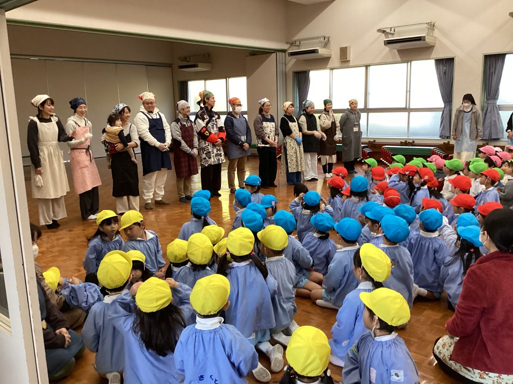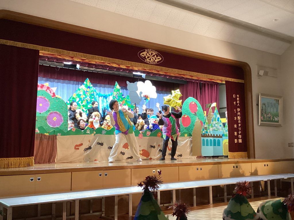 毎年保護者会の方が楽しい劇をしてくださり、子ども達は真剣な眼差しで見ていたり、手拍子をしたり歌を歌ったりと子ども達の楽しそうな姿・表情が見られます♪
