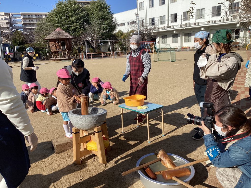 ともち米が蒸されいい香りが漂う幼稚園を餅に見立てるなんて