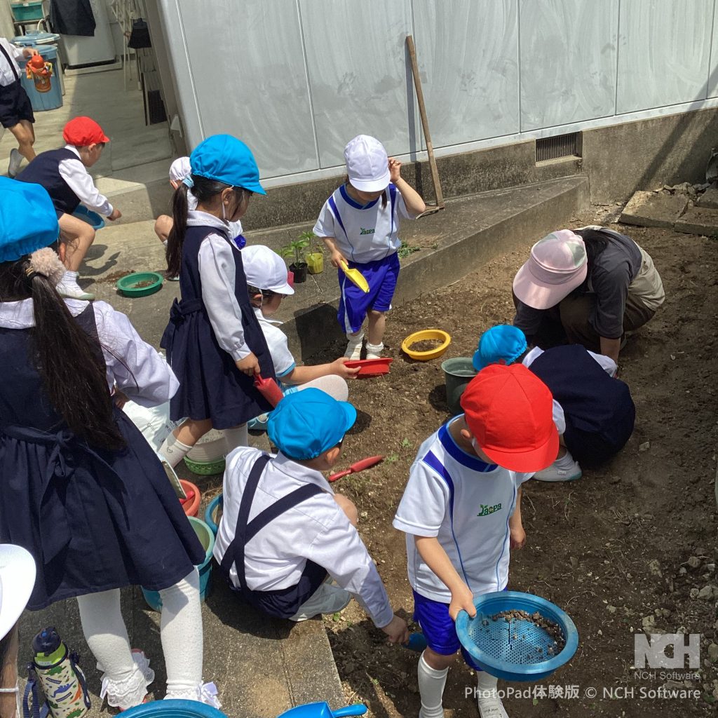 今年は年長児で畑を作り、植物や野菜をみんなで一緒に栽培することにしました。