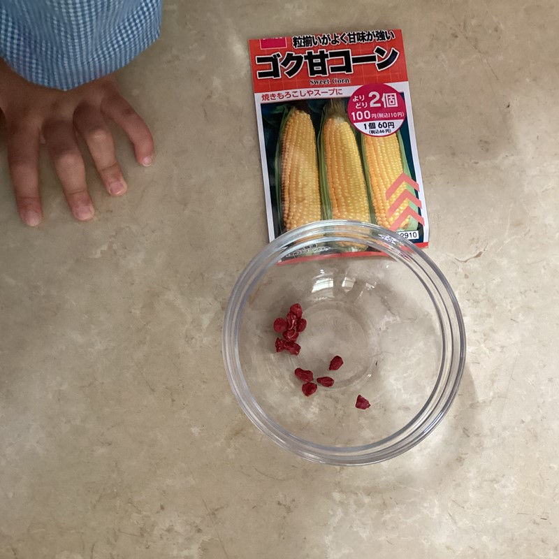 「お豆の種やのにピンク色や!」「ミニトマトの種めっちゃちっちゃい!」